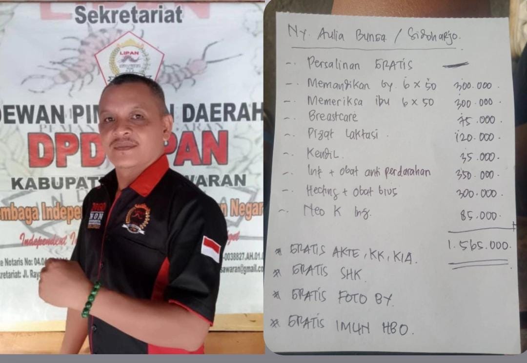 “Ini kan pasien normal datang malam besoknya pulang ,dan jelas ada tulisan oknum bidan tersebut minta biaya tambahannya . Ini sudah jelas pungli bahkan informasi yang diterima korbannya sudah dua kali melakukan persalinan tetap dikenakan biaya ” terang tokoh LSM LIPAN tersebut .