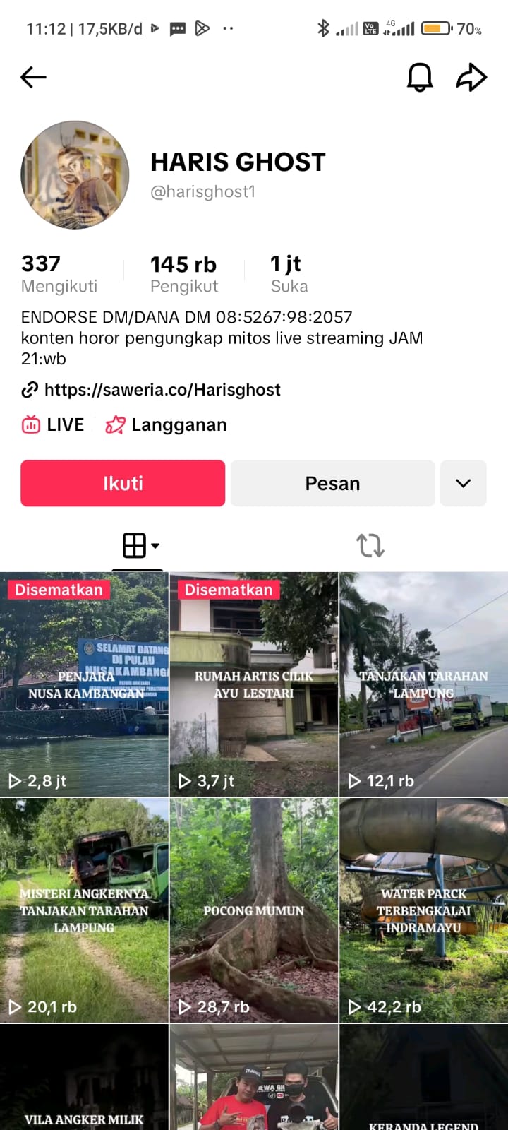 Pasca Viral Diduga Bawa Istri Orang ,Akun Tik Tok Hantu Haris Ghost Menghilang