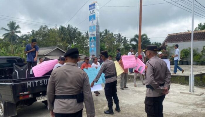 Tanggamus-Warga Pekon Banjarnegri Kecamatan Gunung Alip menggruduk Balai Pekon Banjarnegri. Senin, 19 Januari 2025.